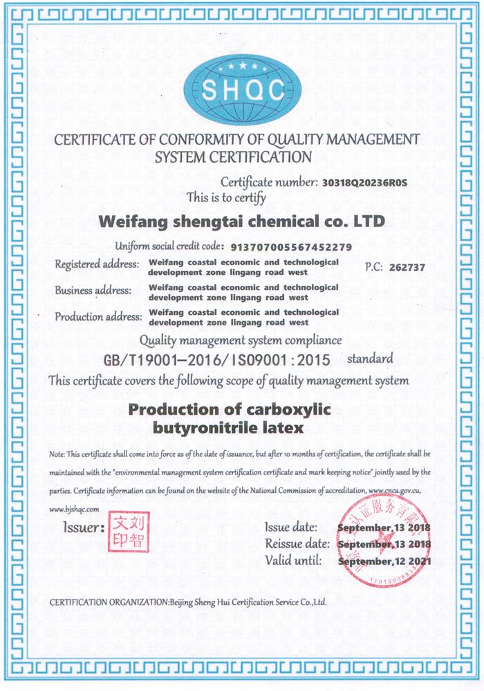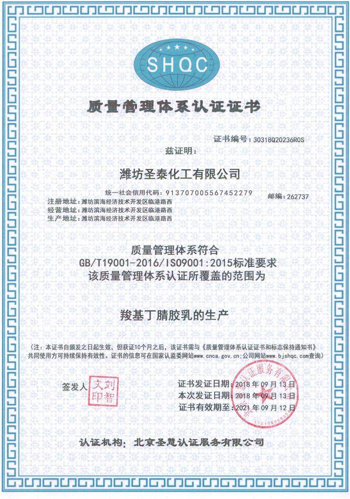 濰坊圣泰化工有限公司位于山東省濰坊市濱海開(kāi)發(fā)區(qū)臨港化工園區(qū),是一家致力于合成膠乳研發(fā)與生產(chǎn)、經(jīng)營(yíng)銷(xiāo)售各類(lèi)化工品的綜合性現(xiàn)代化工企業(yè)。